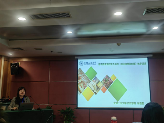谷勤勤老师作了题为“基于雨课堂教学工具的《特征值与特征向量》教学设计”教学类专题报告,介绍了韩漫