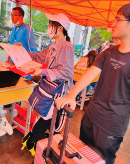 随后学长学姐们帮助新生搬运行李至宿舍,并为新生介绍学校和学院的基本情况,并耐心地一一解答新生提出的问题。