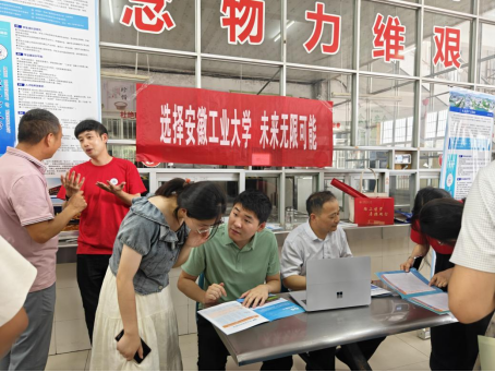 安徽工业大学展位前摆放了详细的招生宣传资料,展位前站满了来咨询的考生和家长。在咨询会现场,招生组一行开展韩漫
