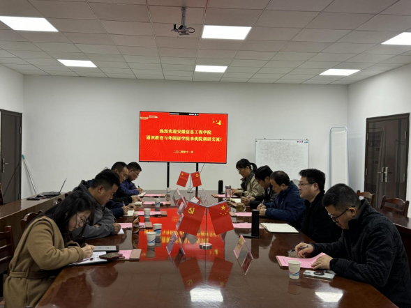 汪春胜代表学院对安徽信息工程学院来院交流表示热烈欢迎。杨二光介绍了学院的发展历史与各专业的建设情况,李文喜介绍了学院公共课的教学情况。罗冬梅介绍了学院数学建模团队组织情况、竞赛组织情况及近年来取得的成绩,胡文明介绍了应用数学系拔尖班的建设情况。双方围绕数学建模、专业建设、人才培养等进行了深入细致交流。