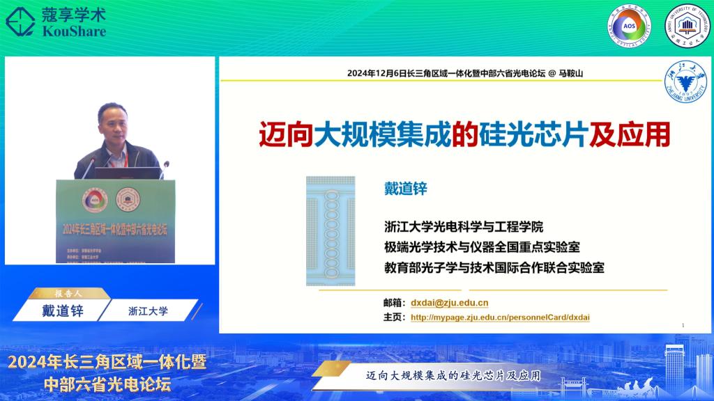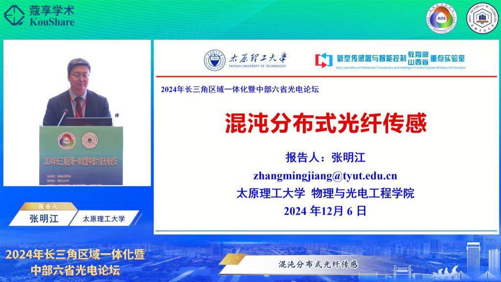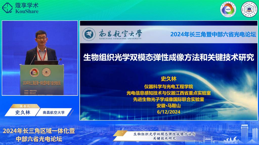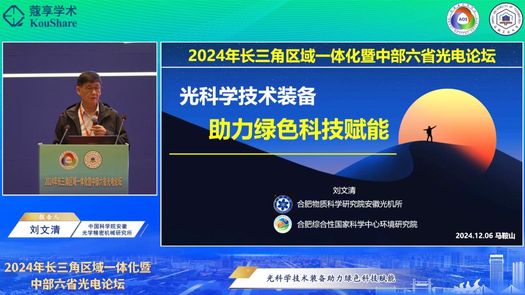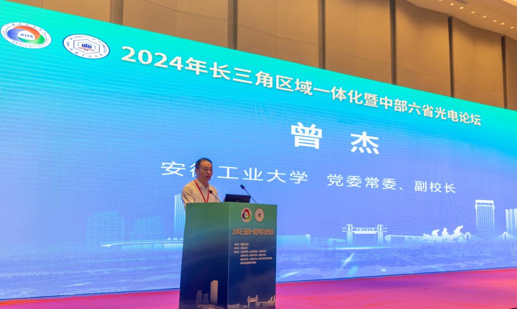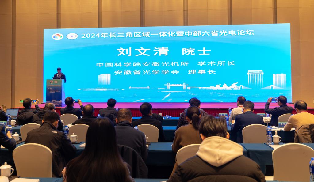 承办的2024年长三角区域一体化暨中部六省光电论坛举行。安徽省光学学会理事长、中国科学院安徽光机所学术所长刘文清院士,校党委常委、副校长曾杰出席开幕式。开幕式由安徽省光学学会秘书长、中国科学院安徽光机所党委书记谢品华研究员主持。来自高校、科研院所、光电企业的专家学者和青年学生共260余人参加活动。