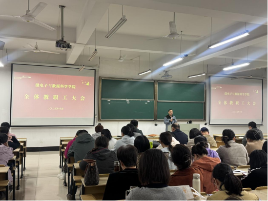 在数理楼403召开全院大会,会议由学院党委书记汪春胜主持,全体教职工参会。