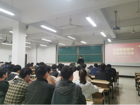 于数理楼403开展“弘扬雷锋精神,争做时代先锋”专题党课活动,微电子本科生党支部书记张佳良老师授课。活动由院团委书记段世祥主持,学院全体学生党员参加。