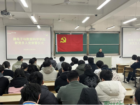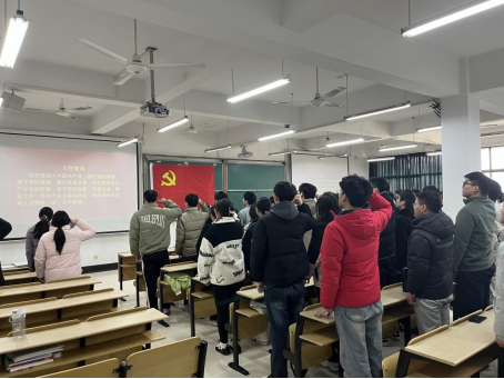 在数理楼403为新发展党员举行入党宣誓仪式。学院党委书记汪春胜、党委副书记张敏、各学生支部书记及全体学生党员、部分入党积极分子参加了宣誓仪式。