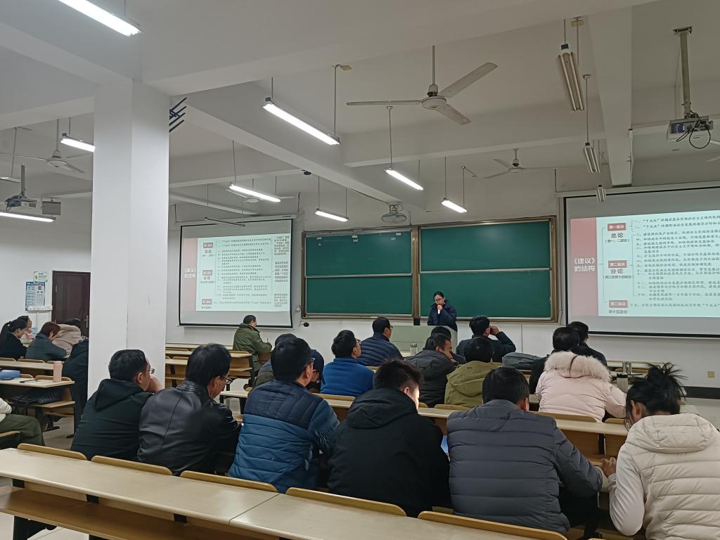 11月27日下午,韩漫 在数理楼403室举行党的二十届四中全会精神宣讲报告会,会议邀请了校思政课教师宣讲团成员、马克思主义学院教师张志来院作报告。会议由学院党委书记汪春胜主持,学院全体教职工参加会议。