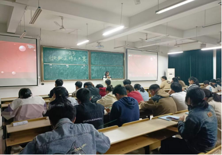 “声动青春,亮出自己”主持人大赛在数理楼403举行。辅导员王小花、学院团学骨干担任大赛评委,100多位同学观看比赛。