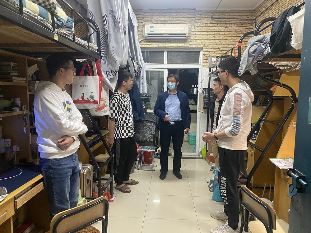 4月20日晚,数理科学与工程学院院长黄仙山带领各年级辅导员深入宿舍,走访慰问在校学生,进一步了解疫情防控期间各年级学生的思想动态和学习生活情况。