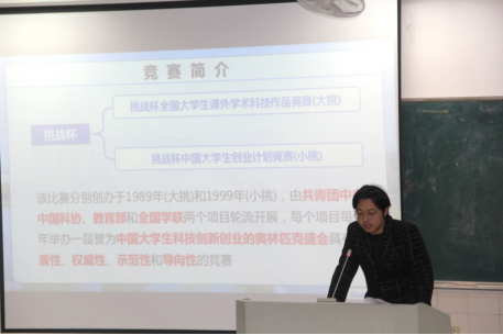 张睿以“如何利用创新创业大赛提升个人竞争力”为切入点,从比赛目的、参赛要求、赛程赛制、竞赛收获四个角度全面讲解两个赛事。赛事政策方面,介绍了学校关于赛事的激励政策;参赛条件方面,分析了参赛作品分类以及各项目组别的定位及参赛条件;备赛要点方面,梳理了赛事各阶段的准备要点,申报书撰写、商业计划书撰写的注意事项。张睿鼓励同学们把握机遇积极参赛,将在课堂上学到的理论知识融入于实际操作中,以赛促学,不断激发自我。会后,同学们就大赛选题、参赛细则等方面与张睿进行了深入交流。