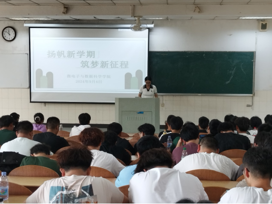 在阶教101召开“扬帆新学期,筑梦新征程”秋季新学期年级会。2023级辅导员王小花与全体学生参会。