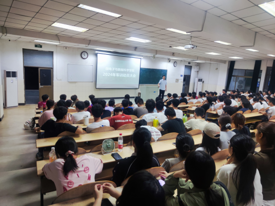 于秀山校区东教一阶101召开2024级新生军训动员大会。2024级辅导员及全体参训学生参会。会议由辅导员段世祥主持。