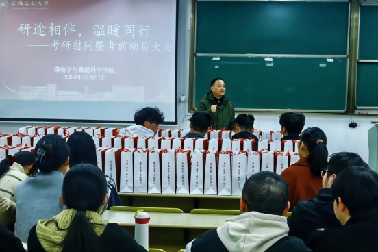 汪春胜代表学院向全体考研学子表达了学院的关心,送去学院全体老师们的祝福。他强调,考研不仅是对个人学术能力的考验,更是青春岁月中一次重要的自我挑战和成长机遇。他希望同学们秉持学院“严谨、唯实、融合、创新”的院训精神,在考研战场上全力以赴,为自己的青春交上一份满意的答卷。