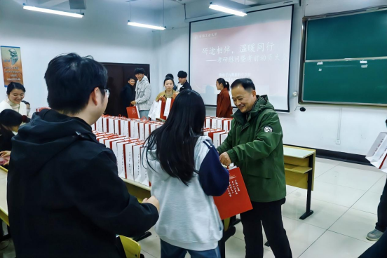 随后,与会老师为考研学生代表发放了“考研加油包”。同学们纷纷表示将不负学院的期望,全力以赴,迎难而上,努力实现梦想,以优异的成绩回报学院的培养与老师们的期望。