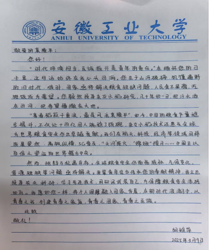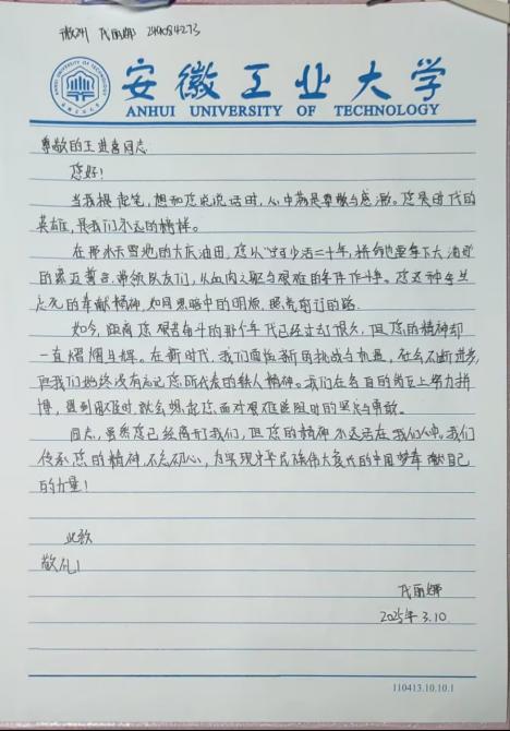 活动期间,全院学生积极参与并纷纷投稿,信笺之上,一笔一画皆凝聚着同学们的拳拳真情,字里行间满溢着对先辈们的崇高敬意与深切感激。同学们纷纷在信中郑重表态,将以国家建设先辈为楷模,传承无私奉献精神,奋力书写属于自己的奋斗青春篇章,并坚定立志将为国家发展和社会进步贡献自己的力量。