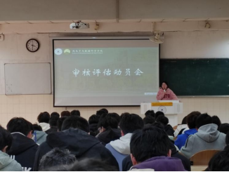 22级在阶教101开展审核评估动员会及2026届就业动员会。院党委副书记、副院长张敏、22级辅导员和全体22级学生参加会议。