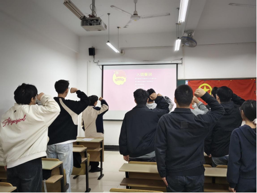 2025年下半年新团员入团仪式在数理楼303举行。学院团委书记段世祥、各班团支书及本期新发展团员参与此次仪式。