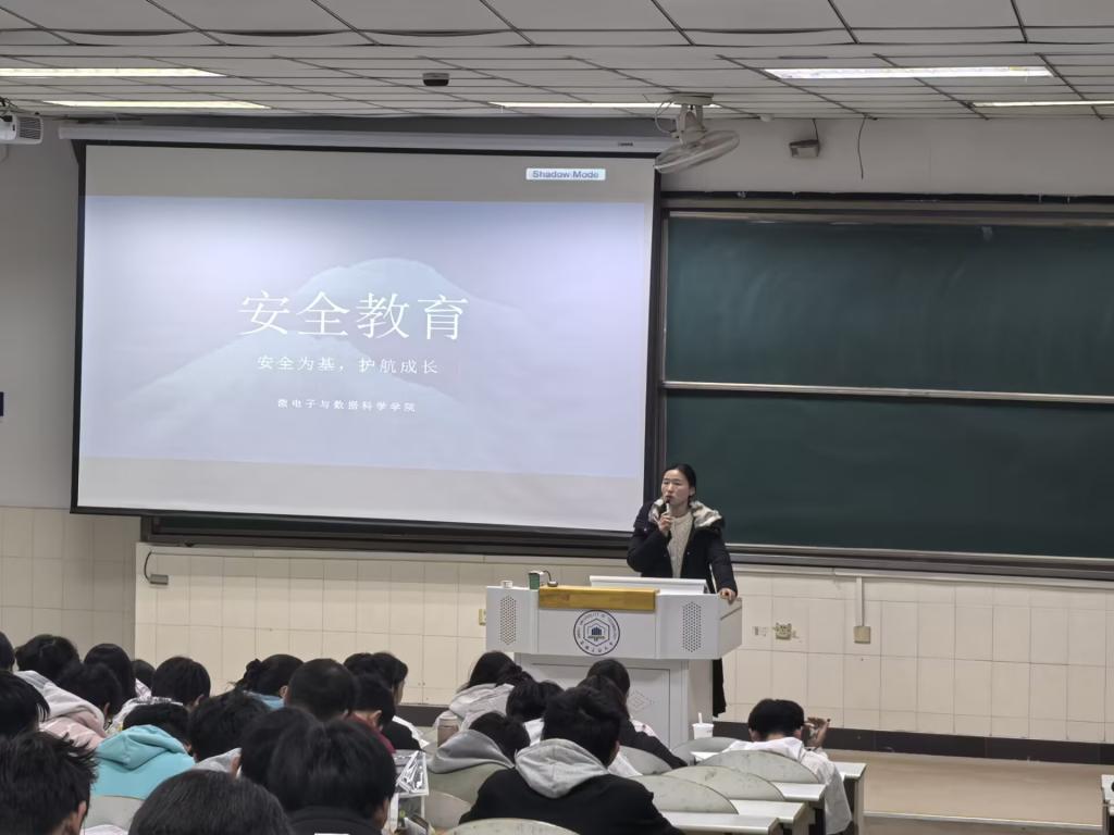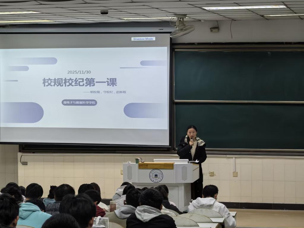 针对2025级新生开展“校规校纪第一课”暨安全教育科普活动。学院大一辅导员周文潇主讲,全体新生到场参与。